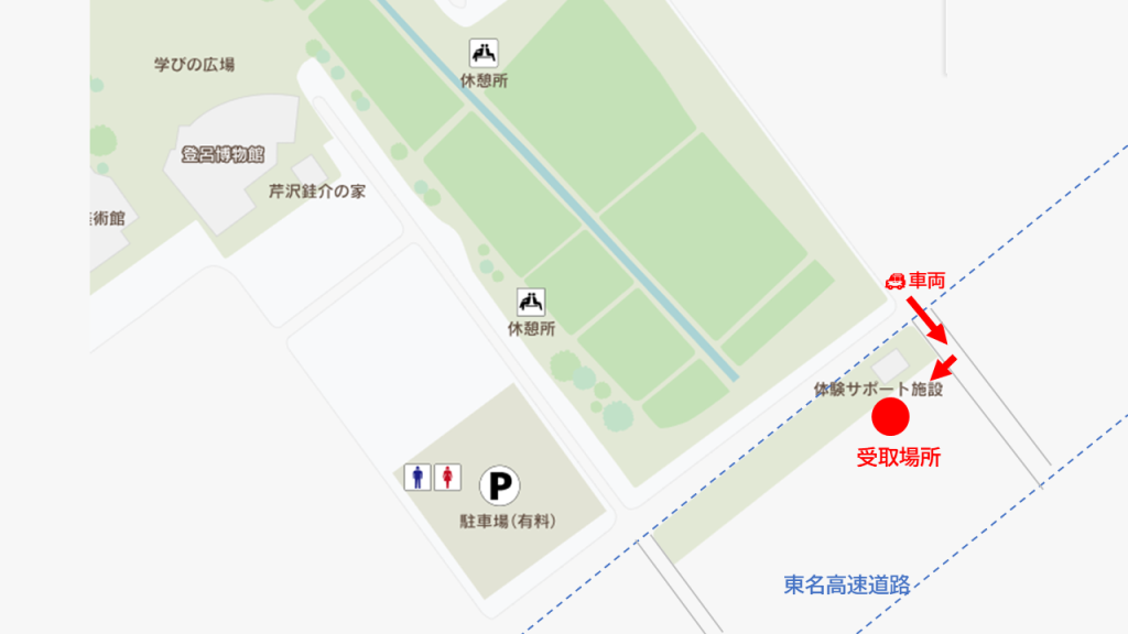 ・受取は登呂遺跡南側の体験サポート施設にて行います。藁の積載時のみサポート施設横に一時駐車可能です。